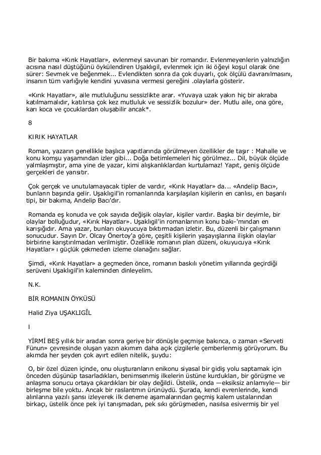 23 ağustos pazartesi günü saat 11'de ekranlarda olan kırık hayatlar dizisi konusu merak ediliyordu. Kanal d ekranlarının günlük dizisi olarak yayın hayatına başlayan kırık hayatlar konusu ve oyuncu kadrosu ile izleyicinin dikkatini çekti. Yazar, farklı toplumsal kesimlerden seçtiği karakterlerin yaşam tarzları, aile yapıları ve maddi durumları arasında zıtlıklar yaratarak geleneksel olan ile modern olanın karşılaştırmasını yapmıştır. Kırık hayatlar özet halid ziya uşaklıgil'in en önemli romanlarından bir tanesi olarak kabul edilen kırık hayatlar alışılagelmiş alt kesimi anlatmak yerine sosyal statüsü yüksek, varlıklı insanların yaşadıklarını ele almıştır. 3.62 · rating details · 81 ratings · 7 reviews.